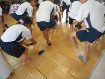 体重測定がありました。前回に比べ,体重も少しずつ増えていました。給食もたくさん食べて,これからも丈夫な体をつくっていきましょうね。靴下ぬぎはき大会も,速くできるようになりました!