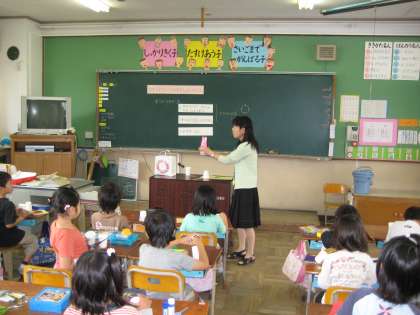 子どもたちは,緊張した顔をしながら,発表など張り切って学習する
