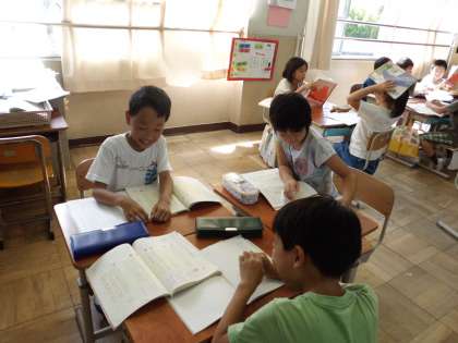 国語科「伝えよう 楽しい学校生活」の学習です。”1年生にこれからすることや上の学年になってからすることを教えよう”というめあてに向けて今,頑張っています。今日は,グループごとにどのように説明するかを話し合いました。上手な話し合いってどんなふうに進めたらいいのか考え,確認しあった後,各班の司会役が進めていました。準備はこれからですが,1年生にわかりやすく伝えたい!とはりきっています。
