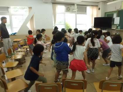 遊び係が,クラス遊びを準備してくれました。この日は,雨で運動場が使えなかったので,教室で「なんでもバスケット」をしました。みんなで,楽しく遊ぶことができました。次回が楽しみです。