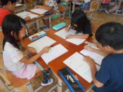 生活科の学習で,地域を探検に行きます。大原野の地域には,どんな場所や建物があってどんなことをしているのか,疑問がいっぱい!その疑問を解明するために,2年生が大原野探検隊として,インタビューに行ってきます。どんな質問をするのか,グループで相談しているところです。