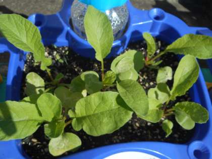 観察名人がたくさんいます。ハツカダイコンも大きくなってきました。葉っぱの模様や茎の色,どのくらい大きくなったかなど詳しく観察カードに書いていました。