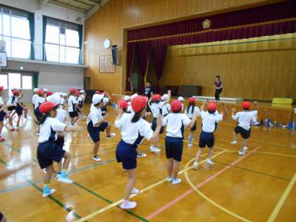 運動会の練習では,新しいダンスの振付けを覚えています。みんな一緒の動きだけでなく,列によってタイミングをずらすところもあります。始めは笑顔咲いていた子どもたちでしたが,だんだん必死の顔に!でも,友だち同士で教え合いながら,笑顔いっぱいで踊っていました。