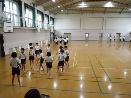 運動会で行う団体演技のダンスの練習をしています。ダンスインストラクターが,それぞれのパートに分かれて演技指導してくれました。