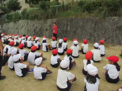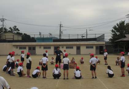運動会の「つながり玉入れ」を当日一緒に競技する2年生・4年生合同で練習をしました。入退場の練習をして,玉入れの練習もしました。当日がとても楽しみです。