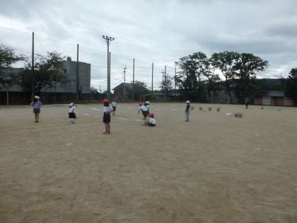 バラエティ走の練習もしています。フープをくぐったり,ゴムを跳んだりしています。どの練習もはりきって一生懸命です。