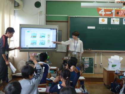 今日の英語活動の学習にALTのカレン先生が来てくださいました。ネイティブな英語に親しむことができました。筆箱の中身の尋ね方を学びました!