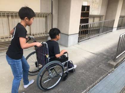 総合的な学習の時間に『車椅子』を体験しました。足の不自由な人の気持ちを考えながら,学習をしました。車椅子の操作や,声かけの仕方,補助の仕方を学習しました。子どもたちにとっては何気ない段差でも,車椅子を使う場合には大きな壁であることを改めて感じた子どもたちでした。