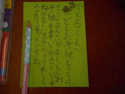 がまくんとかえるくんにお手紙を書きました。子どもたちは,友だちの優しさを感じたようです。こんな友だちほしいな。こんな友だちになってほしいな。人のためにに何が出来るのか,考えることが大切ですよね。
