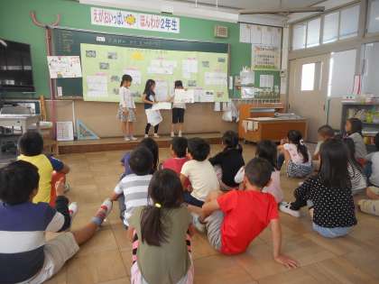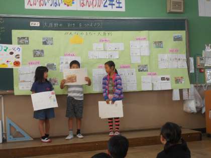 大原野の「ステキ」をみんなに発表しました。知らないことばかりで,「130年前からあったん!」「お米も売っているの知らなかったわ!」など,つぶやきが多くありました。大原野の地域をもっと好きになることができました。