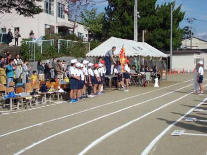 ラジオ体操,エール交換の後,プログラム3 3年生の80メートル走です。