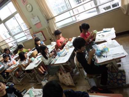 図画工作科の学習を楽しみにしていた様子の子どもたち。朝から,「先生,こんなびんを持ってきたよ。」とニコニコ。どんな鉛筆立てにしょうかイメージが膨らんでいる様子が伝わってきました!紙粘土に好きな色を混ぜて,思い思いに造り上げました!出来上がった,子どもたちの作品に私もハッピーな気持ちをもらいました!!!