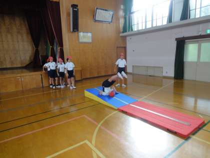 体育科で「マット運動」の学習をしています。連続技に挑戦と,挑戦したい技の練習の時間,テキパキと意欲的に練習を進めていました。きれいにできる技を増やして,マット運動の楽しさをしっかりと感じていってほしいです。