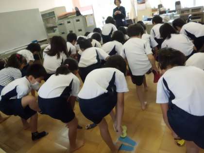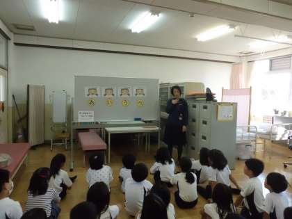 体重測定がありました。ということは…。そうです!大原野名物,靴下ぬぎはき検定です。さぁ,今日は,どれくらいのタイムで,靴下を脱いで履けるか…。一生懸命取り組んでいました!そのあと,養護の先生から,風邪をひかないようにするための「あいうべ運動」を教えて頂きました。みんなで,「あいうべ運動」やってみよう!!