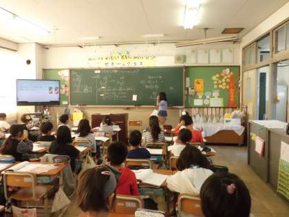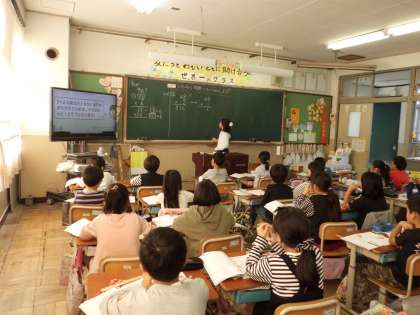 算数科「1けたをかけるかけ算の筆算」の学習。自分の考えを進んで発表できる子どもたち。どのように計算するのか,自分の方法を「まず〜」「次に」と順序だてて説明していました。説明するためにどんな言葉を使えばいいのか,どんな風に説明すると友達にわかりやすいのか,それを考えて友達に伝える力を今伸ばしていきたいと思っています。わかりやすい説明ができる友達が増えると,それを聞いて理解が深まる友達も増えます。そうやって学び合っていこう!