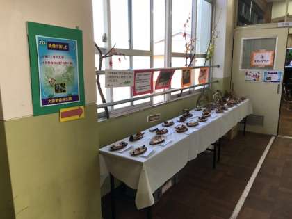 2,4,6年生が,7月の森林公園自然観察会で制作したクラフトや,書道部の作品も展示されました。