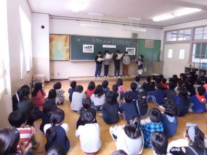 国語科の学習で,4年生がクラブ活動の紹介をしてくれました。どんなクラブがあるのか,どんな楽しさがあるのか,写真を使ってわかりやすく伝えてくれ,子どもたちは,いろいろなクラブに興味を持ち,4年生になってクラブに入るのが楽しみになったようでした。最後には,手作りのクラブ活動リーフレットをもらい,教室で嬉しそうに読んでいました。4年生とどんどんつながりを深めていこう!