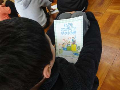 冊子をもらって,冬休みにエコライフに取り組みます。そして,冬休み明けにもう一度学習を深めていって,地球環境を守る一員としてさらにレベルアップを目指します。