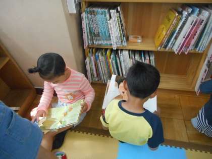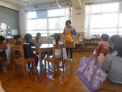 待ちに待った図書館に行って,本の借り方を教えてもらいました。たくさんある本の中から,楽しそうな絵の表紙から選んだり,友達と一緒に選んだりして,とても楽しく過ごしていました。