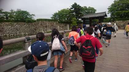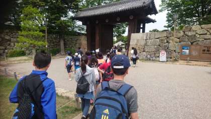 天気も回復し,いよいよ最後の見学先,姫路城に到着しました。これから班に分かれ天守閣を目指します。