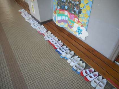 保健室でも,上手に靴を揃えています。かかとを揃えて,隣の友達の靴の横にピッタリとつけてから,保健室に入りました。気持ちいいね!