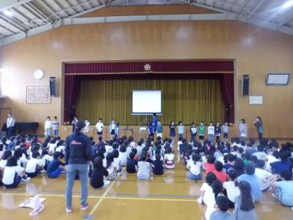 大原野小学校では,毎月第3木曜日を「つながりの日」とし,人権について様々な角度から学習することに取り組んでいます。今日はみんなが楽しく学校生活を送るために,それぞれのクラスが考えた「つながり目標」を発表しました。クラスの代表が全校児童の前でしっかり伝えました。