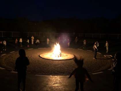 昨日のキャンプファイヤー。幻想的な雰囲気から,レクリエーション係の進行のもと,みんなで盛り上がり,楽しい時間を過ごしました。