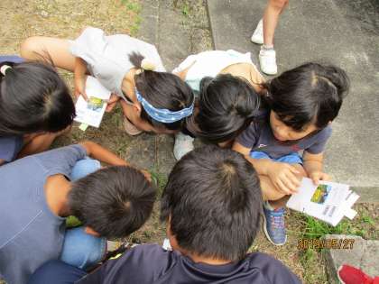 3年生になって初めての総合的な学習の時間がありました。大原野のふしぎを見つけようということで,まずは図鑑をもって校内の生き物を探しました。なんと校内に・・・・カニがいました!!子どもたちもとっても驚いていました!