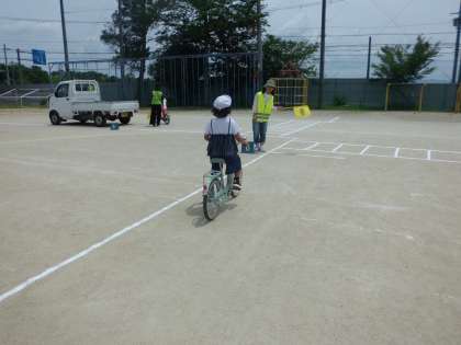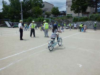 6月5日に交通安全推進会の方やPTA役員,西京警察署の方などに準備や指導をしていただき,自転車教室を行いました。安全な自転車の乗り方を教えていただき,その後に自転車に乗って練習しました。何度も確認する必要があることを学びました。初めて自転車に乗る子もいて,貴重な体験になりました。