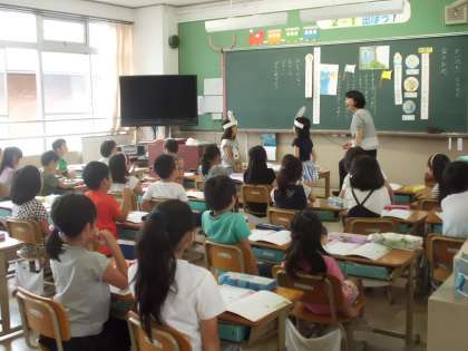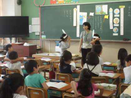 休日参観の2時間目は,道徳科の学習で,「金のおの」の学習をしました。うそやごまかしをせずに,正直に話す大切さを学びました。ペープサートやおめんを使って,思いを伝え合いました。