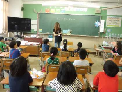誰が来てもらえるか楽しな読みきかせ。この日も,先生が登場すると喜んでいました。にこにこ楽しそうに聞き入っていました。