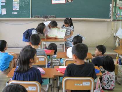 毎週本係が「みんなはどんな本が好きかな〜」と考えて本を選び,読み聞かせをしてくれています。あじさい読書月間ということもあり,読書熱がさらに高まっている子どもたち。本係は休み時間に何度も練習をし,本番みんなに読み聞かせをするときには,堂々と聞きやすい声で読んでくれています。来週の読み聞かせも楽しみだね!
