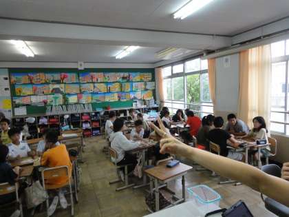 外国語活動で色々な食べ物の味を表現しました。その学習を生かして,英語ヒントかるたで楽しく外国語に慣れていきました。また,次も楽しみです。