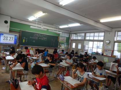 40分間,最後まであきらめずにすべての問題に取り組みました。ものすごい集中力で,一生懸命解いていました。終わった後,「疲れた…。」とつぶやきが。でも,表情はいい顔をしていました。「頑張った!」という気もちが伝わりました!