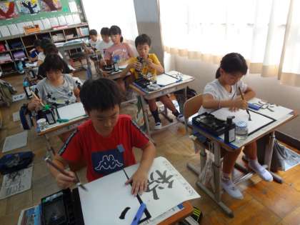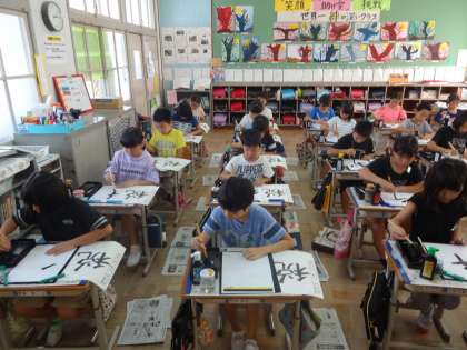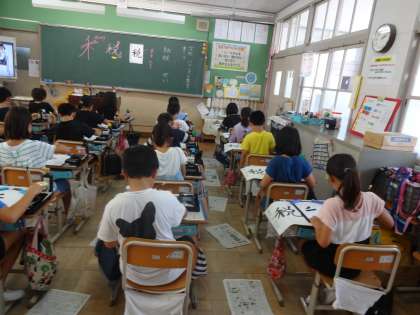 夏休み明けの書写の様子です。とても気持ちのいい緊張感の中,一画一画丁寧に,最後まで集中して書きました。満足のいく字が書けて,喜んでいる姿が多く見えて,うれしかったです。