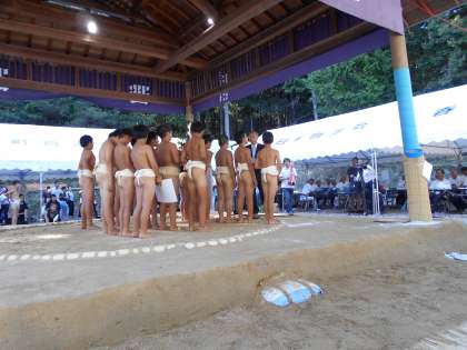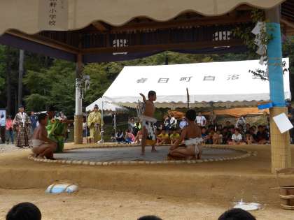 8日(日)大原野神社で恒例の相撲大会がありました。大原野小学校だけでなく,近くの学校の児童や中学生が参加しました。心配していた台風もそれ,暑い一日となりました。土俵では,神相撲など伝統的な相撲の取組を見せていただいた後,参加したそれぞれの学校の児童が力を出し合いました。大原野小学校の6年生は団体戦で3位になりました。個人戦や三人抜きでも,練習の成果を発揮し,最後まで粘り強くがんばりました。会場でいただいた,手作りの新米おにぎりの味は,格別でした。