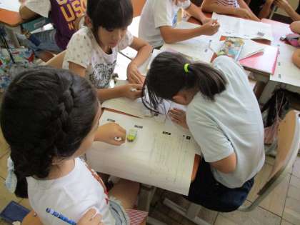 国語科の学習では,インタビューで聞いたことをもとにしながら,どんな内容を1年生に伝えればいいのかを考えて文章を組み立てています。