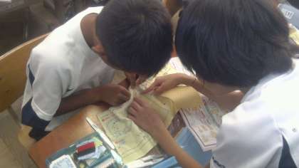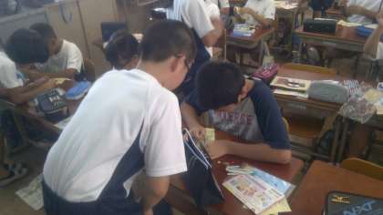 家庭科「ひと針に心をこめて」で,裁縫の学習を進めてきました。最後は練習布でティッシュケースを作ります。慣れない裁縫ですが,みんなで教え合い,学び合いながら,完成めざしてがんばっています。