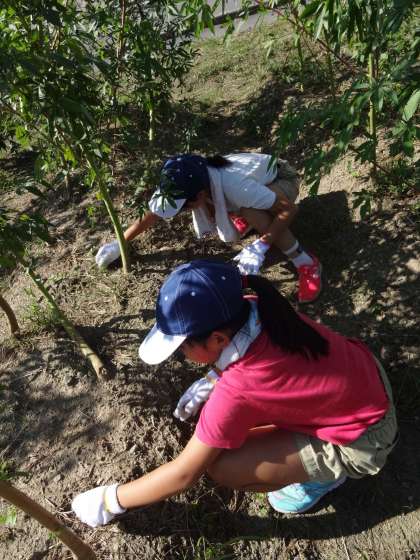 大原野の杜の方と,ケナフの成長のために草刈りをしました。小さな種だったケナフが,とっても大きく育っていて子ども達は驚きの声をあげていました!「草刈りをすると気持ちがスッキリするな。」「はがきを作るのが楽しみ。」という声が聞こえてきました。草刈りを一生懸命する背中,とてもかっこよかったです。
