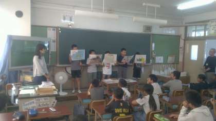 夏休みに取り組んだエコライフチャレンジの事後学習会がありました。最初に,地球温暖化について,事前学習会で学んだことの復習をしました。