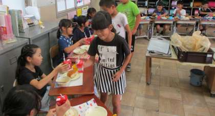 今日はイベント係が企画してくれ,9月のお誕生日会を開催しました。おなじみのみんなで円になって楽しく給食を食べ,牛乳ハイタッチをしてお祝いしました。