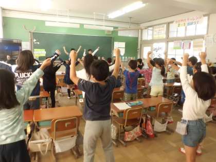 5・6年生の全校ダンスの係の人達が教室に来て,教えてくれています。全校ダンスを楽しく元気に踊りました。