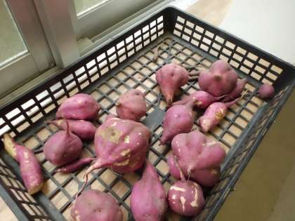 鮮やかな赤紫色,立派な大きさに,思わず「うわあ〜!すご〜い!」と歓声が上がりました。「おいしそ〜う!!」