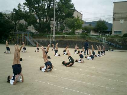 今日は,運動場で練習しました。