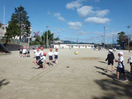 遊び係が,毎回遊びを変えて楽しくクラス遊びを行ってくれています。前回は,大繩をしました。今回は,王様ドッジボールでした。みんな,元気に遊んでいます。