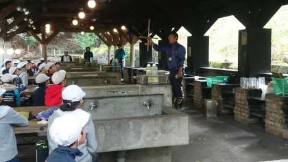 火おこし体験が始まりました。説明を聞き,いよいよチャレンジです!