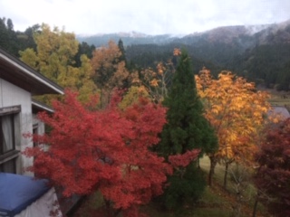 窓の外を見ると,木々が色づいていました。