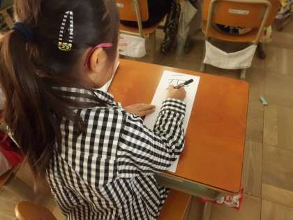書写の学習で,フェルトペンを使って「元気な子」を書きました。ゆっくりていねいに書こうとがんばりました。それぞれすてきな字が仕上がりました。