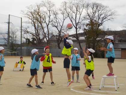 今日から体育科の学習で「ポートボール」が始まりました。チームのみんなで声をかけ合ってパスをつないでゴールします。準備や片付けもみんなで協力して早くできるようになりました。