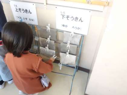 そうじが終わった後,ぞうきんを片づける時に,きちんと広げてていねいにかけていました。毎日,きれいにかかっていて,気持ちいいです。